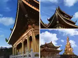 The architectural complex of Mount Emei's Jinding is built in harmony with the mountain's contours, forming a progressive spatial sequence. The main structure, Huazang Temple, is arranged along the central axis with three main halls: the Maitreya Hall, the Mahavira Hall, and the Samantabhadra Hall. Each hall is intricately crafted with gilded designs that shimmer brilliantly under sunlight, showcasing not only religious characteristics but also a perfect blend of spatial aesthetics and artistic depth. As the sacred site of Samantabhadra Bodhisattva, Huazang Temple embodies the spirit of "endless vows and actions," serving not only as a religious sanctuary but also as a fusion of architectural beauty, historical culture, and natural landscapes, creating a realm where body, mind, and spirit converge.