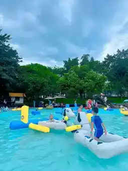 1️⃣ So many ways to enjoy the Lingxiu Hot Springs💧: Just a short walk away! Be sure to experience the “Five-Tier Pool Waterfall Hot Spring,” with warm and pleasant water on the upper level and cool refreshing water below. Kids can climb and play the “Hot Spring Challenge” at the same time; there’s also a splash pool (thrilling challenge course), a wave pool (super fun with a seaside vibe), and a lazy river pool (relaxing slow float)—a full day of fun with no repeats!