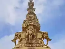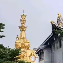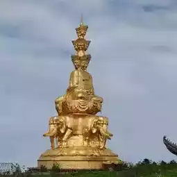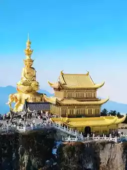 The Golden Summit of Mount Emei, at an altitude of 3,079 meters, is the iconic location of the mountain. Here stands the famous golden statue of the Ten-Faced Samantabhadra Bodhisattva, radiant and supremely majestic. This statue is carried by four elephants, and the Bodhisattva features ten heads facing the ten directions, symbolizing the spirit of Samantabhadra's "Ten Great Vows." The Golden Summit is not only a magnificent scenic viewpoint but also a sacred space where Buddhist pilgrims worship at Samantabhadra's bodhimandala and experience the power of the Dharma's vows.