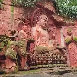 - "Buddha's Spirit" red stone carving: A must-photo at Baoguo Temple in Emeishan, the greenery in the background accentuates the rocky theme.