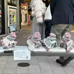 A female employee at the station shop started putting it on him because "he looks cold,"