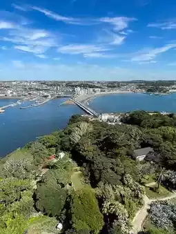 Enoshima Sea Candle, a symbol of Enoshima, is an observation lighthouse that seems to float in the sky. Feeling the sea breeze as you climb the stairs, you will be greeted by a spectacular panoramic view of the Shonan sea🌊🏔️