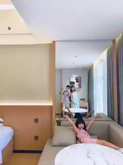 Parents with kids during summer break know the struggle – packing feels like moving house, and the itinerary is more exhausting than work... This time, we escaped to Enping Shanquan Bay and stayed in the "Poolside Water Access Room." My daughter slipped into the water from the balcony in her swimsuit before I could even stop her, while I lounged on the chair eating ice cream🍦. Now this is what a vacation should be💕