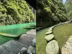 Get the viral photo! Transparent boats floating on emerald water seem suspended in mid-air, only 20 yuan/person! Best shooting time is sunny days at noon when sunlight directly hits the valley floor for the best effect.