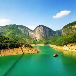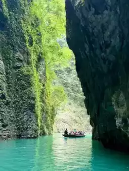 (Highlighting the crystal-clear floating boat effect of Pingshan Canyon, attracting nature enthusiasts)