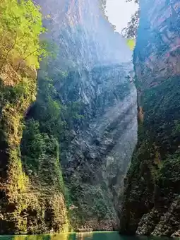 The river in Pingshan Canyon is crystal clear and emerald green. The small boat glides on the water as if floating in the air. I chose to arrive at the scenic area at **7 AM**, when there are fewer people and the water is clearest, making for the best photos. The boatmen are great at posing, guiding us to make various gestures, and the "floating" photos amazed all my friends! Remember to wear **bright-colored clothes** to stand out against the green water.