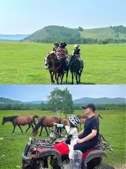 3️⃣ Enhe - kids make rye bread paintings and nesting dolls - China-Russia border checkpoint - Wulan Mountain 1000-meter grass sledding - horseback riding across the grassland - bonfire party - grassland fireworks show - stay in a Mongolian yurt (140KM)