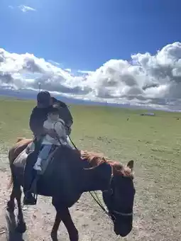 Overall, the child was very cooperative, sleeping in the car and playing when getting off. We saw cattle, sheep, horses, and even wolves. I recommend a small car instead of a big bus; the scenery is on the road, and the scenic spots are not as good as the wild views. The weather is unpredictable, so if the sun comes out, get off immediately to take photos. The grassland weather is cool, making it very suitable for summer travel to avoid the high temperatures in Hangzhou. The mosquitoes there are huge, but the child was never bitten, while I got bitten badly (wear long sleeves and pants). Therefore, I recommend mid to late August. The local milk is very tasty.