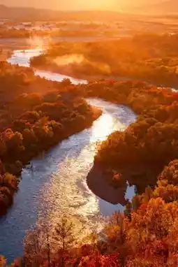 ▪️Stand at the China-Russia border to see the boundary river reflecting the colorful forest