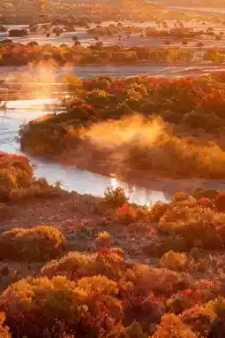 ✔️Use a telephoto lens to shoot the S-shaped river winding around the golden island