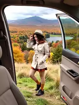 Isn’t the mountain and lake autumn scenery in the background stunning?
