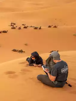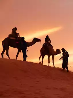 Evenings in Merzouga are often eerily quiet, with only the sound of the wind and the crunch of footsteps on the sand. Many sit on the dunes' ridges, letting their shadows cast a long line across the sand, reminiscent of a historical trace. Others choose to ride camels along the ancient trade caravan route connecting Africa and the Mediterranean.