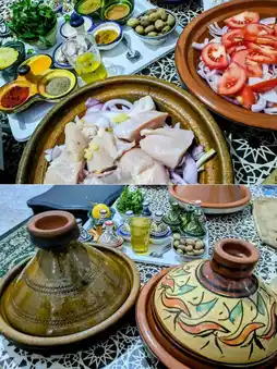 Go to the market with the locals to buy the ingredients, use lemon, olives, coriander, mixed with nearly ten kinds of spices of different colors, wrap chicken, potatoes, green beans and onions and cook them. The rich aroma makes you want to eat it!