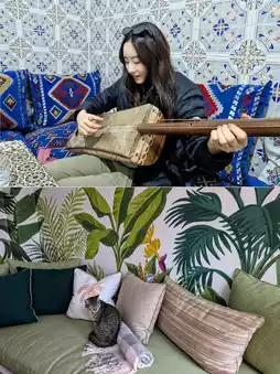 While waiting, I learned how to play Gimbri🎻, a three-stringed instrument made of camel skin, from a local guy, and listened to them sing local songs. Although I didn’t understand a word, I really felt the tranquility and peaceful life in the local area under the influence of music and food.