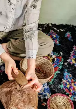 Use a stone to knock off the shell of the argan fruit picked from the tree to get the white kernel, put it into a stone mill and grind it finely, then add a small amount of water, knead the fruit puree with your hands like kneading dough, and you will get a clumping fruit puree cake and a small amount of oil. This is the prototype of argan oil, and then filter and precipitate it... During this time, I chatted with the owner of the house about the local customs and practices, and heard the occasional birds singing, chickens crowing, dogs barking, and the aroma of bread wafting from the oven. It is worth enjoying the fun life of returning to the original field.