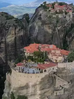 Explore the Holy Monastery of Great Meteoron, hike scenic trails, and catch a breathtaking sunset over the cliffs 🌅.