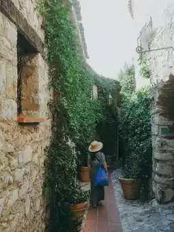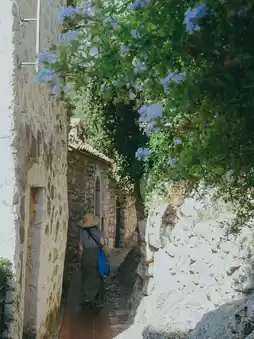 Once you enter the village, you'll find a maze of narrow cobblestone alleys, and walls covered in greenery and flowers that are truly beautiful.