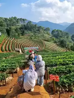 ○ Strawberry fields on Doi Ang Khang are very popular tourist attractions, especially during the winter season when the strawberries are fully ripe. We can visit the strawberry fields, but generally, we are not allowed to pick strawberries from the trees. However, you can buy fresh strawberries from the villagers who have picked them to sell.