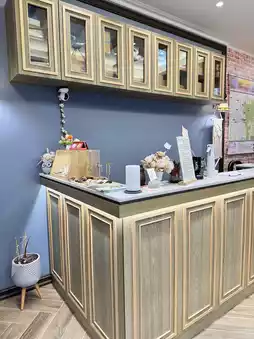 The reception area is elegantly designed with wooden frames and blue-gray walls, blending coziness with a modern touch. The staff are incredibly friendly, making you feel at home the moment you step in. During check-in, they thoughtfully introduce nearby attractions and dining options.