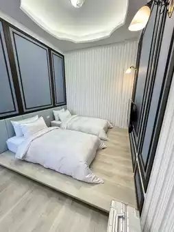 The rooms are fully equipped with branded towels, a hairdryer, bottled bamboo charcoal water, and complimentary coffee packs and instant noodles from the inn—perfect for late-night cravings. The decor follows a minimalist European style, with a dome ceiling and detailed wall paneling that create a sophisticated ambiance. The plush and soft beds ensure a restful night's sleep.