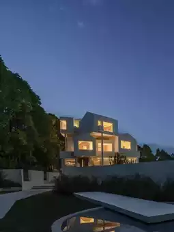 ✔️ Shoot upward capturing sky + green mountains + flowing water in three layers