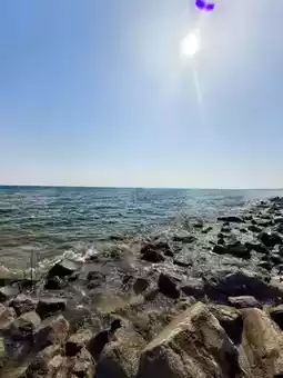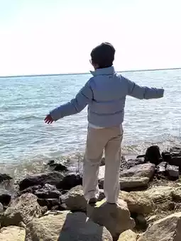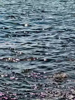 Standing quietly by the water, I looked up at the vast expanse of water, where the waves broke the sunlight into silver dots.