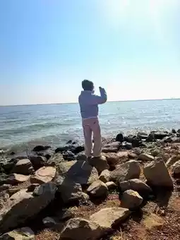 The sun was warm and the wind was gentle! Standing among the rocks, I quietly looked at the trees around the lake. It was winter, but it didn't feel desolate.