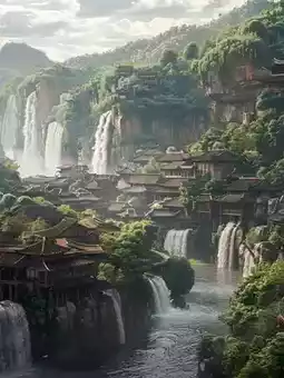 🌊 Furong Town: Imagine a thousand-year-old Tujia ancient town next to a spectacular waterfall. At night, the pumpkin lanterns light up, and the sound of the waterfall creates a beautiful picture.