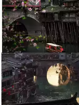 From the bridge, you can see the scenery on both sides of Xue Bridge, Tiao Rock, and Hong Bridge, as well as a panoramic view of Fenghuang Ancient Town.