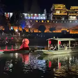 One activity everyone should try at least once is taking a boat ride along the Tuojiang River to enjoy the serene atmosphere of the ancient town. It's incredibly relaxing, especially if you go around 4 PM. After the boat ride, you can explore the town and find delicious food to enjoy. Fenghuang is famous for its grilled mala skewers, and there are so many options to choose from that you'll be spoiled for choice. The food is truly mouthwatering! I recommend staying until evening because the vibe changes completely. The town becomes lively and crowded with tourists, as many Chinese people prefer to explore at night.