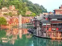 Fenghuang, known as the Ancient Phoenix Village, is a charming riverside town in Hunan Province, famous for its well-preserved Ming and Qing architecture. Wooden stilt houses line the Tuojiang River, their reflections shimmering on the water, while narrow stone-paved alleys wind through clusters of old shops, teahouses, and local homes. The town is rich in Miao and Tujia minority culture, offering traditional crafts, folk music, and colorful festivals. Visitors can stroll along the riverbanks, cross iconic bridges, or take a boat ride to admire the lantern-lit scenery at night, when the whole town glows with golden light. The aroma of street food fills the air, from spicy noodles to sweet rice cakes, adding to its inviting atmosphere. Fenghuang is more than just a tourist spot—it feels like stepping into a living museum, where history, culture, and daily life merge in harmony. Every corner tells a story of the past, wrapped in the romance of the present.
