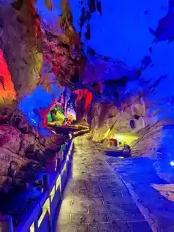 The entrance ticket costs 98 yuan for adults and 40 yuan for children. Local residents can purchase discounted tickets for 90 yuan (we bought ours at the ticket office). There is no need to wait for a group, and I didn’t see any guides inside the cave. The main hall is very stuffy due to poor ventilation, and my daughter felt unwell with a racing heartbeat. As you go deeper into the cave, the air becomes cooler and more breathable. I highly recommend visiting this site. I have never seen such enormous caves before, and I was overwhelmed with awe. A tip: watch your step as stalactites grow in the middle of the path, and be cautious of anything that might fall from above. Wearing a cap is advisable. Since it’s stuffy inside, dress lightly and wear comfortable, non-slip shoes.
