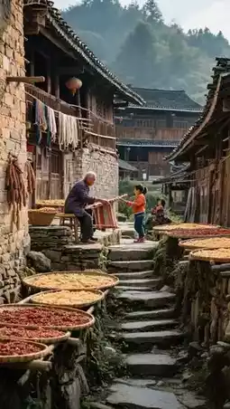 Hike in the village, see ancient walls and stone steps, autumn drying scenes, encounter elders weaving and children playing—every shot is a masterpiece.