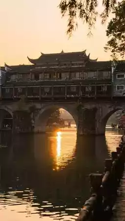 Stroll across Hongqiao Wind and Rain Tower, watch the sunset light up the Tuojiang River.