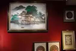 It's one of only two sand-and-stone paintings I still have, depicting a real scene from Fenghuang Ancient Town: Mr. Huang Yongyu's Duocui Tower. It stands on the left bank of the Tuojiang River, backed by Tianma Mountain and facing Hong Bridge. It's a contemporary imitation-archway-style building with long stilts over the water, a suspended platform, and upturned eaves. It features traditional Xiangxi square and rectangular lattice windows, giving it a unique, ancient, and elegant appearance. It blends seamlessly with the surrounding stilt houses, possessing significant artistic character. Friends who visit Fenghuang and take a boat tour will all pass by it. Personally, I think it's the most beautiful cluster of stilt houses along the Tuojiang River in Fenghuang Ancient Town~