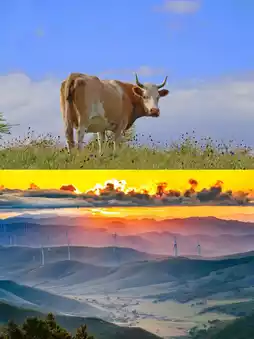 The highest point on the grassland! Windmills, grazing cattle, and fiery clouds create a breathtaking view. Photographers, bring your tripods—every shot is postcard-worthy!