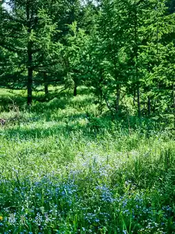 While cities swelter, this 17°C oasis whispers nature's oldest secrets through rustling flower fields, babbling streams, and those ancient grass towers standing sentinel over time.