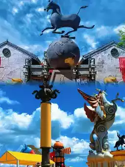 Afternoon🎠: Visit Dancing Horse World Theme Park for thrilling rides like carousels and rainbow slides. Meet adorable Shetland ponies at the Pet Horse Park🐴. Watch the spectacular live-action "Warrior Zhao Zilong" battle performance