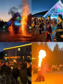 Totem Pole Square → Forest Train → Jungle Tribe → Off-Road Adventure on Cloud Sky Trail → Cloud Sky Camp → Summit of the Sky Trail → Grassland Altay → Flower Fairy Performance → Colorful Suspension Bridge → Birch Forest → Horseback Riding to Forest Pasture → Deer Park → Yaks on the Hillside → Alpaca Afternoon Tea → Mushroom Palace → Lakeside Train → Agate Lake → Mirror Lake → Horse Carriage Ride to Manchu Courtyard → Manchu Cultural Exhibition → Camel Ride Through the Jungle → Exit (Join the Valley Carnival Night at 19:00)