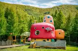 Day 1: Drive to the scenic area → stay at Squirrel Inn (full of childlike fun) → afternoon visit Jungle Tribe + Rainbow Slide → bonfire party at night