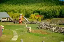Day 2: Mini train → feed cute animals at forest ranch → tea picking at Mirror Lake → learn about Manchu culture at the cultural park → alpaca afternoon tea → camel ride through the forest