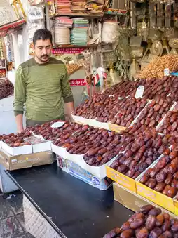 A captivating sight adorned the streets: huge piles of dates, dark and shiny. Vendors claim this fruit is a staple in every household, especially during Ramadan dinners, when families gather around to break their fast with dates and warm milk.