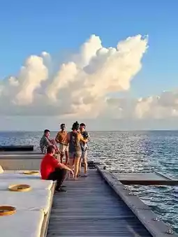 For couples seeking romance, the hotel offers numerous exclusive experiences. You can take a dhoni boat trip at sunset to enjoy a private dinner amid the magnificent twilight of the Indian Ocean, or experience couples' treatments at the spa for complete relaxation. The underwater restaurant and specialty bars add a unique ambiance to your intimate moments, while the open-air cinema under the stars makes evenings unforgettable. Snorkeling and diving activities give couples the opportunity to explore colorful coral reefs together, swim with tropical fish, and create unique sweet memories.