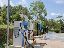 There is also a charging point for electric cars. If you are looking for a beautiful cafe in Mueang Phueng, we recommend this place. They have both savory and sweet menus and drinks. For us, we stopped for a drink and then continued our journey back to Vientiane.
