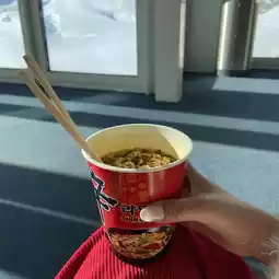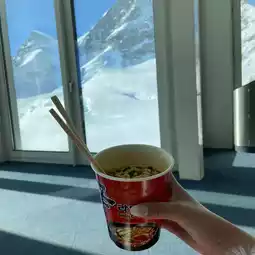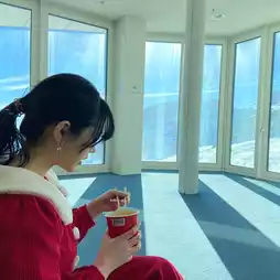 I arrived early in the morning, so there weren't many people, so I took pictures like I had rented the place😁 I ate Shin Ramyun included in the coupon while looking at the snowy mountains, and finished shopping for Lindor chocolates before heading down!!