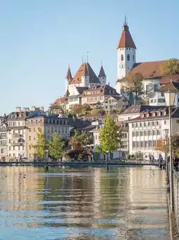 At the heart of the town stands Thun Castle, with its white walls and red roof. Climbing the castle tower offers a breathtaking panoramic view of the entire lake region.