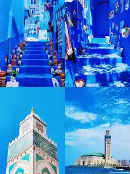 • Attractions: Ride camels in the Sahara Desert to watch the sunrise and sunset; Chefchaouen is the famous blue town; Ait Ben Haddou village is known as "Morocco’s most beautiful village"; Marrakech’s Jemaa el-Fnaa Square is lively and bustling.