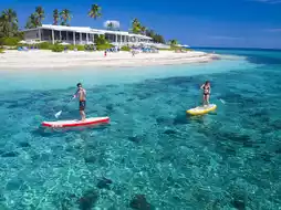 It's worthwhile taking the 30 minutes cruise to Malamala Beach. We did the full day cruise from 9am until 5:30pm. The trip was a short getaway to a place we could relax and swim, because most of the beaches in Denarau are non-swimmable. The cost of the trip includes a round trip bus pickup from area resorts/hotels to Denarau Mariner. There are lounge and beach chairs all over the island for use. Cabanas that come with their own butlers are available on the windward side of the island for rent. We opted for the complimentary umbrellas and lounge chairs and was attended to by our friendly waiter, Nene. The food, the inviting serene environment and drinks were great, making the trip to the island all worthwhile. The trip to the island was uneventful, but on the way back it was hair-raising as we encountered high winds with strong currents. The strong current drove the catamaran into the pier putting a big dent on its portside bow as it was docking to pick us up for the trip back.