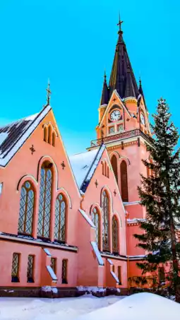 🌊 Kemi Church: This white Gothic-style church on the Baltic Sea is notable for its tall tower and beautifully reflected stained glass windows. It's a must-see for photographers and architecture enthusiasts.