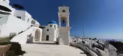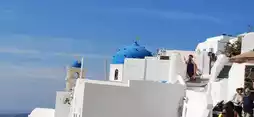 The romantic encounter of the blue-domed churches and the Aegean Sea